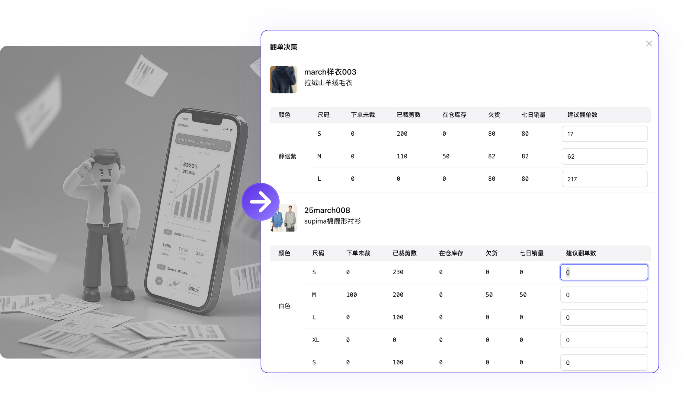 生产了多少件?库存剩多少件?客户欠货还有多少件?最近销量怎么样?